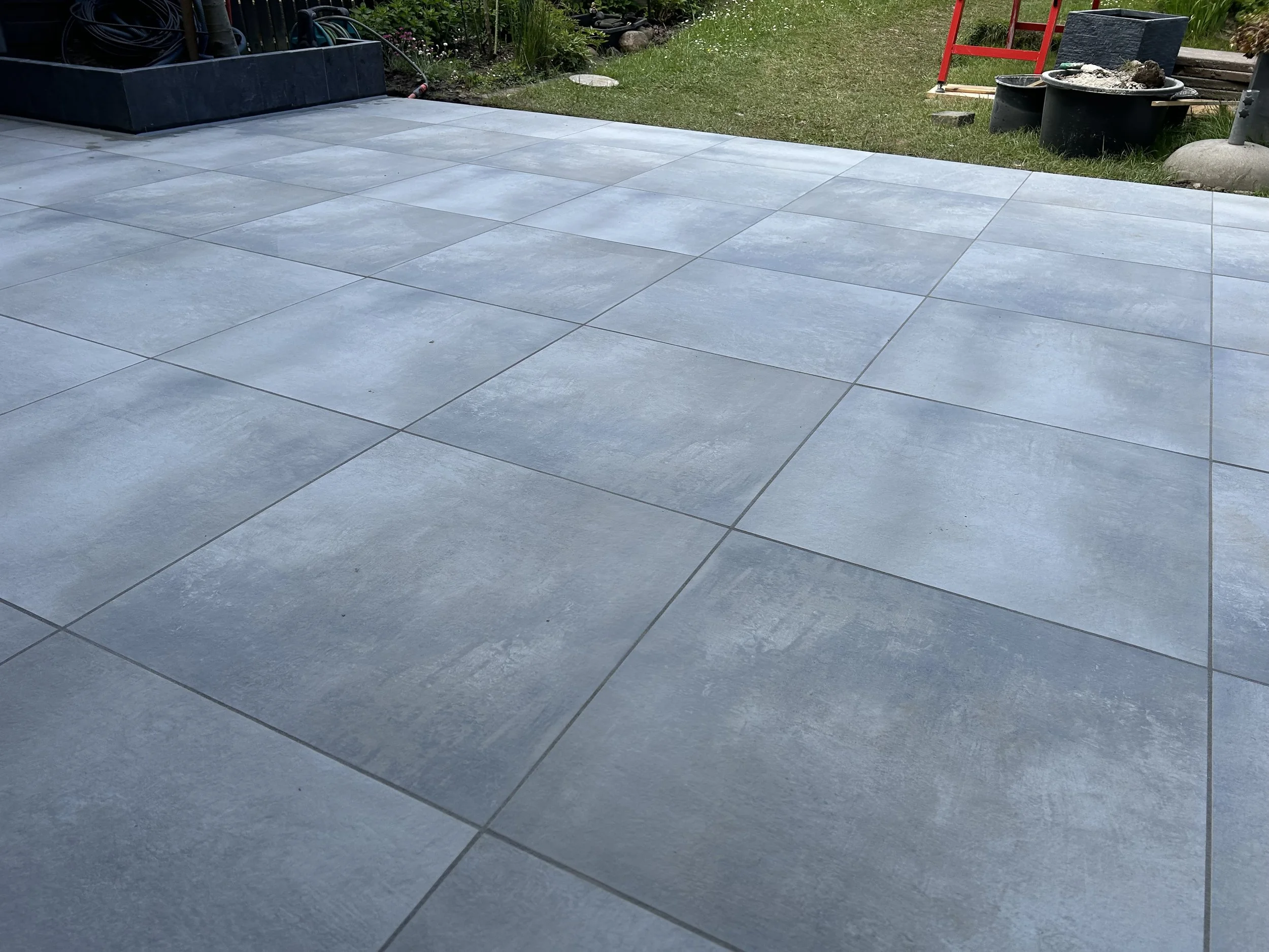 Wetterbeständige Verlegung für Außenbereiche mit Drainagesystemen.